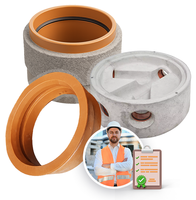 Beton aknafenék elemekhez tervezett, ISO minősített PVC-U idomaink tökéletesen illeszkednek a csapadék- és szennyvízcsatorna rendszerekbe.